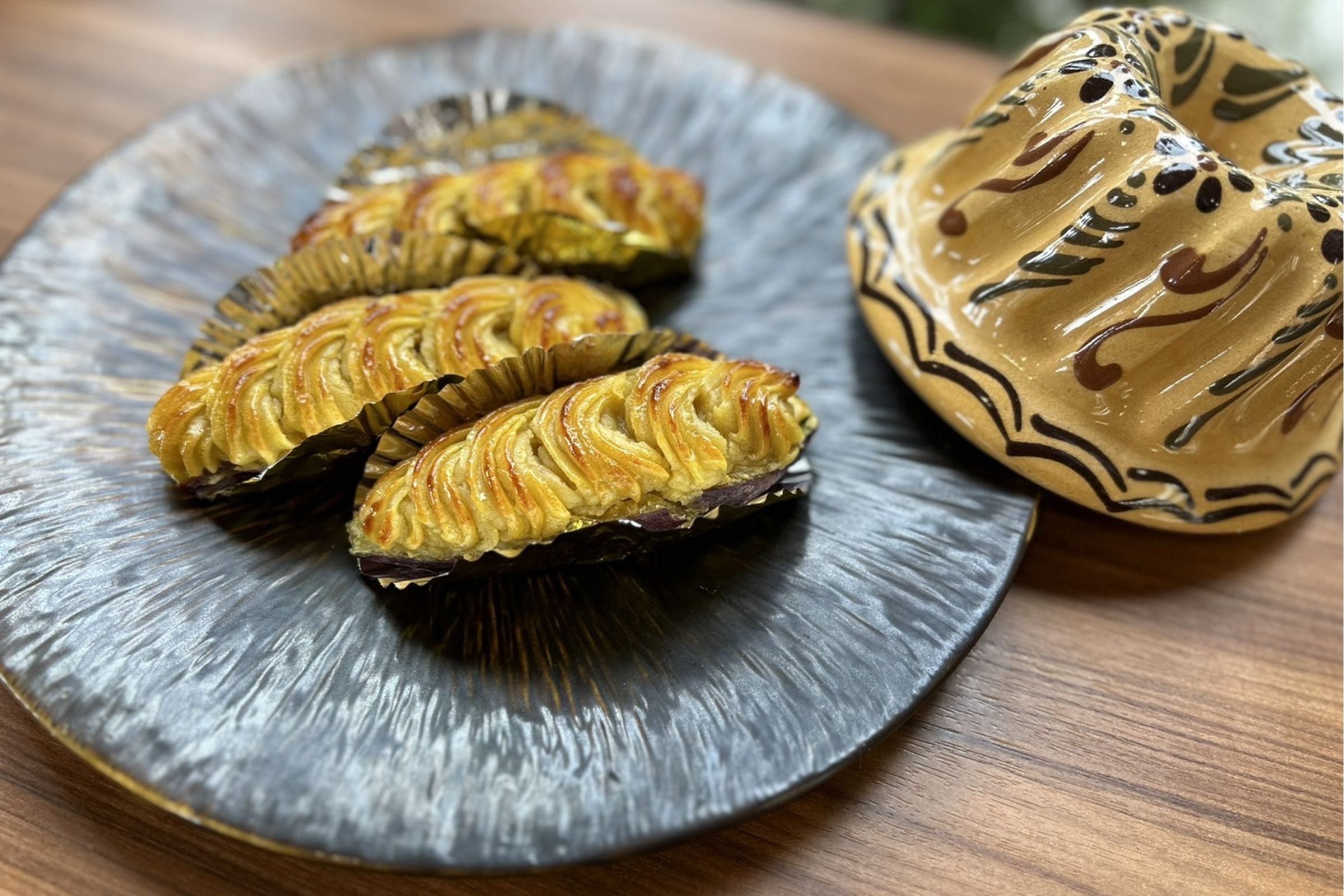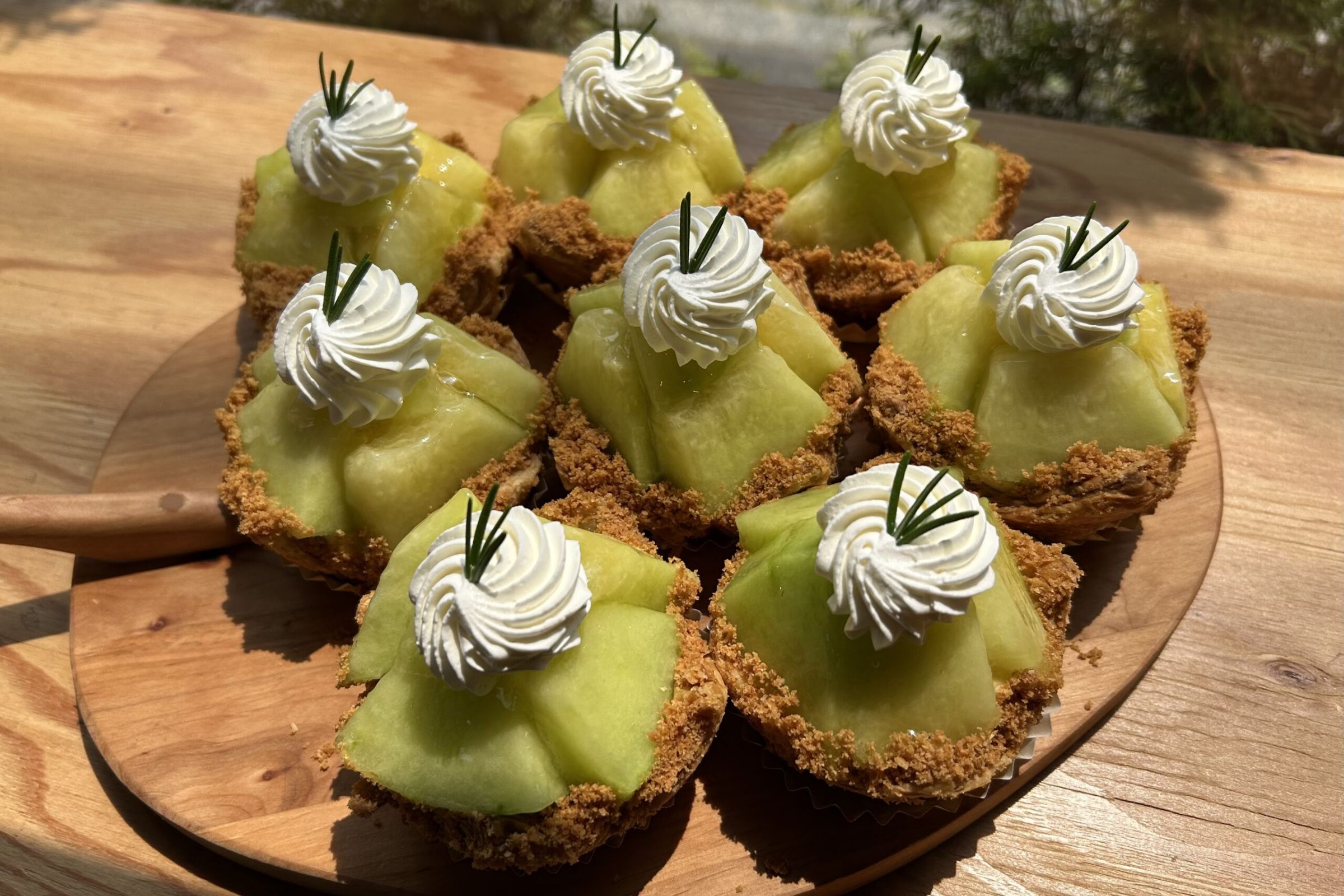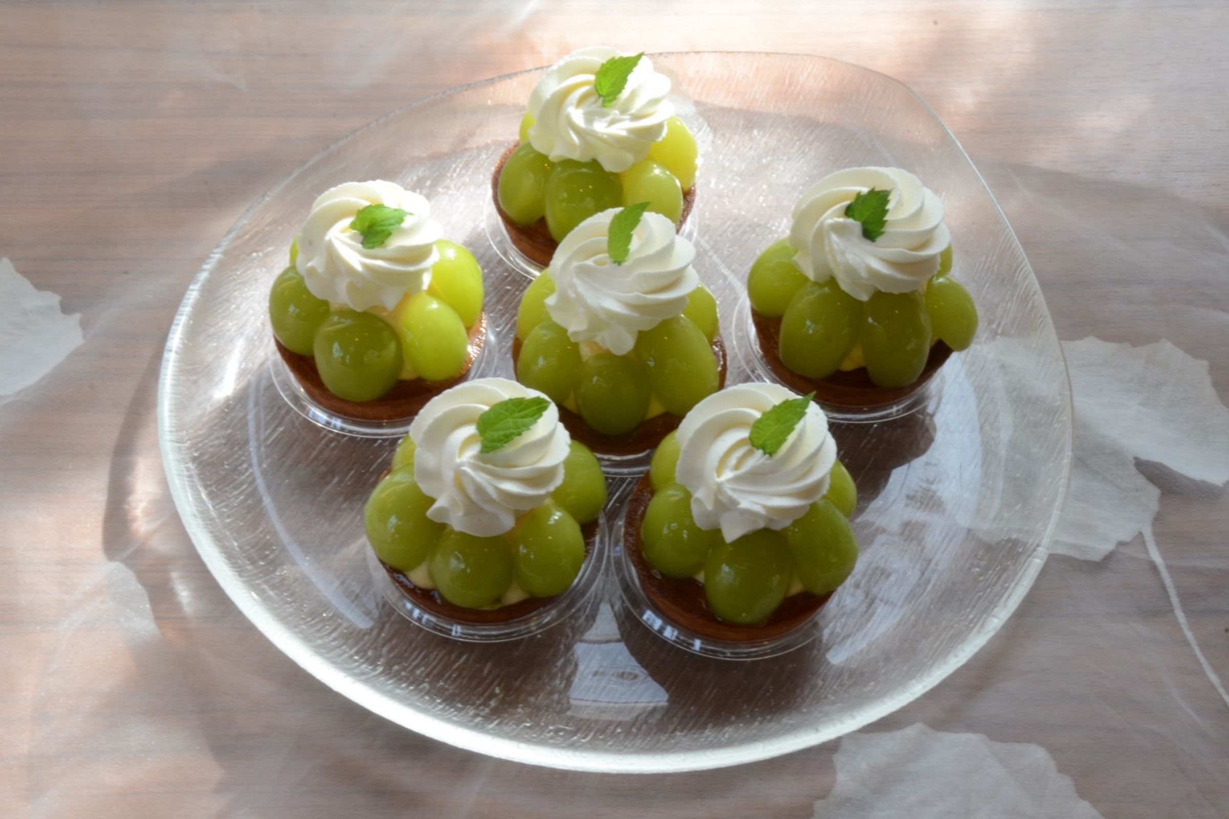 タルトの上にカスタードクリーム、贅沢にシャインマスカットをのせました。